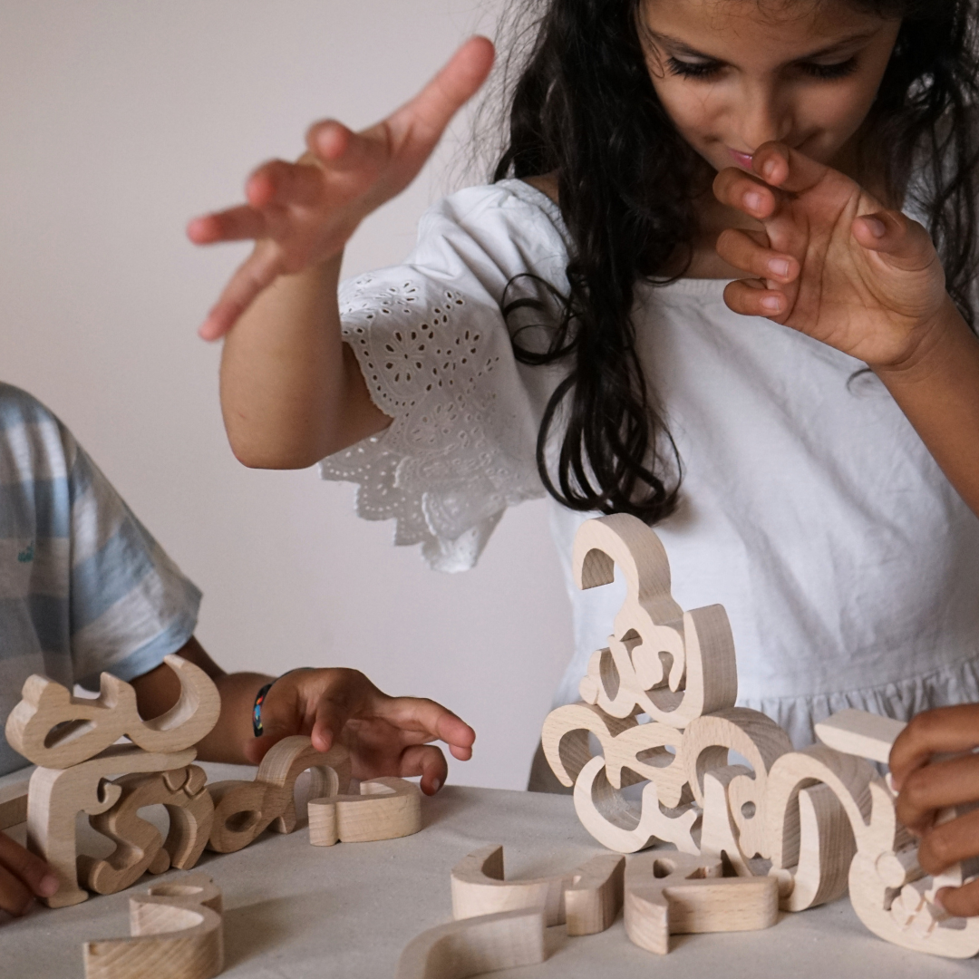 Our first game Abjad is a wooden crafted alphabet that stimulates sight, touch, hearing, and even smell! Details that make the difference in creating an emotional connection with the language